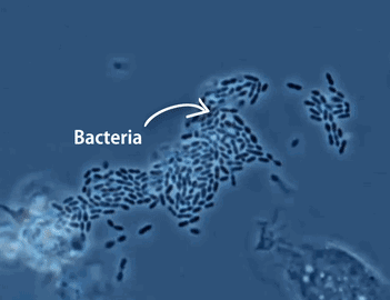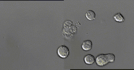 下圖中即顯示,透明圓形狀物體即為免疫細胞,正在慢慢地瓦解,並釋放出細胞內的物質。