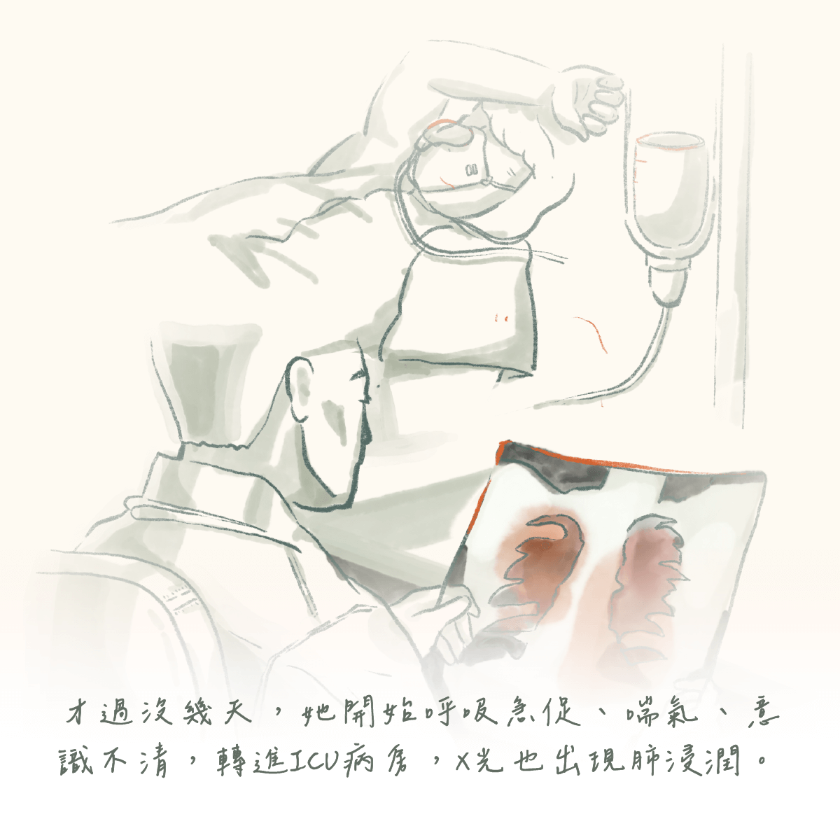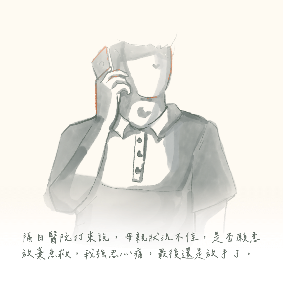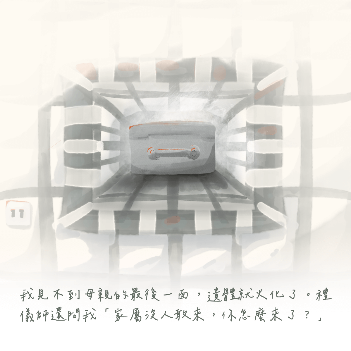 「為何死亡逼近的時候,才發現手上沒有武器能救,老人體弱卻不該死的不明不白。」面對至親離世的痛苦,承擔的身心壓力與傷痛超乎旁人想像,如同所有喪親者經歷了「否認、憤怒、討價還價、沮喪、接受」。唯獨最後一項,家屬至今仍無法做到。